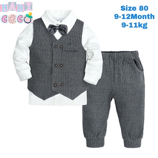 Kids Boy Clothes Gentleman Grey Vest Long Sleeved Bow Shirt Pants 4pcs Suits Infant Children Formal Party Wedding Outfits 3 6 9 12 18 24 Months Lazada Singapore